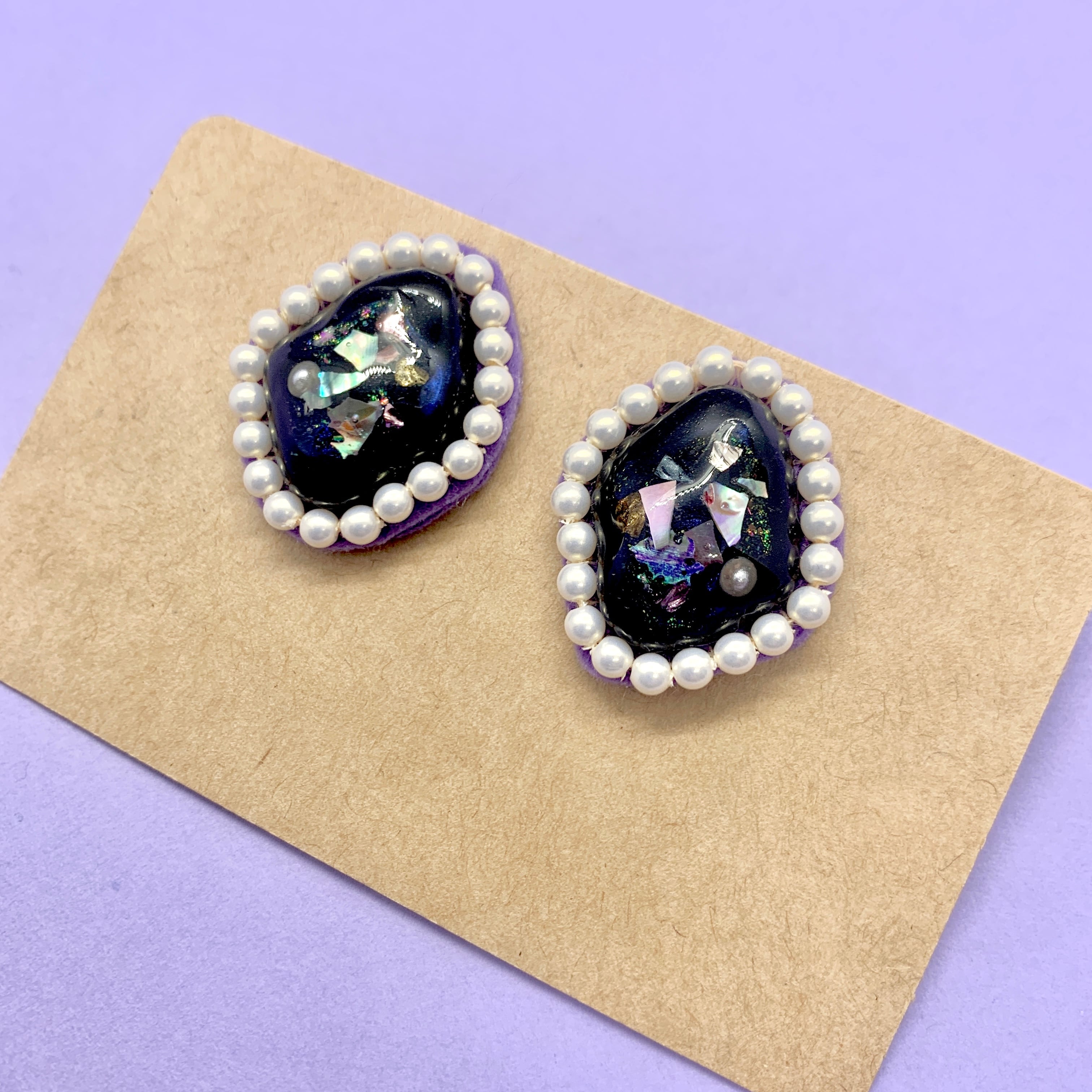 こちらの作品は金属アレルギーの方も安心してご使用できるよう、イヤリングはニッケルフリーのパーツ、ピアスはサージカルステンレスのパーツを使用しておりますが、お肌に合わない可能性もございますのでご確認の上ご使用ください。